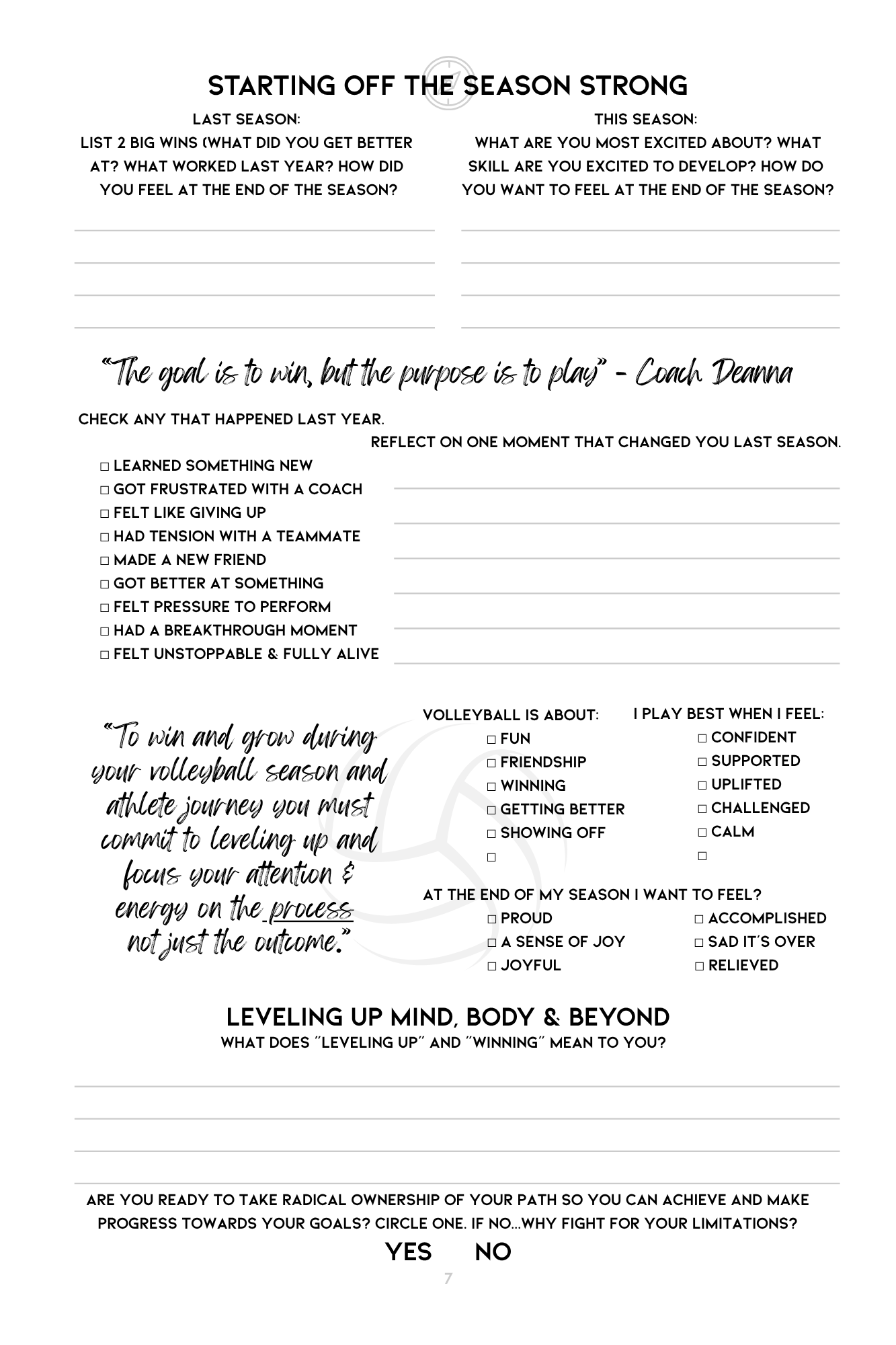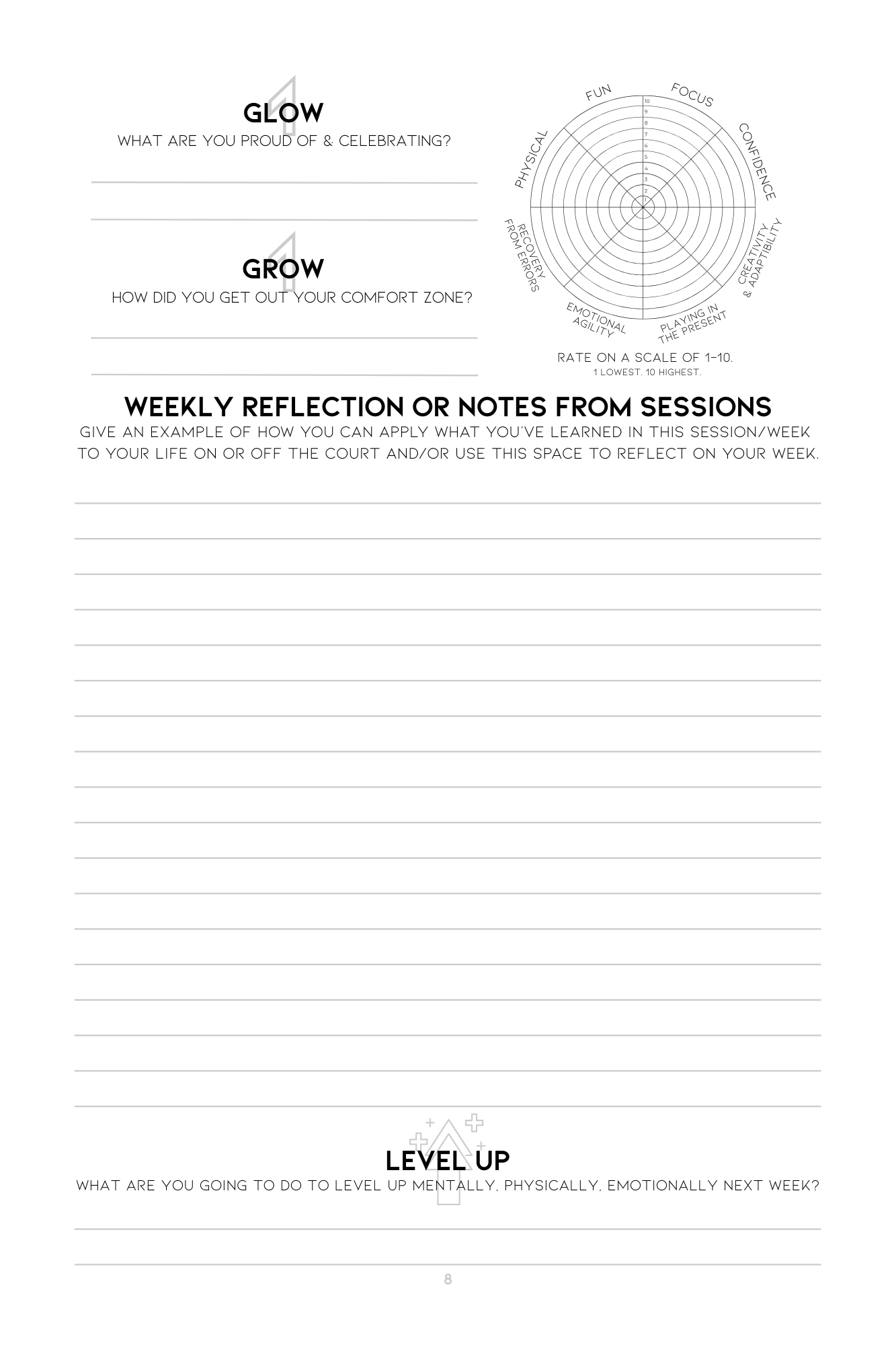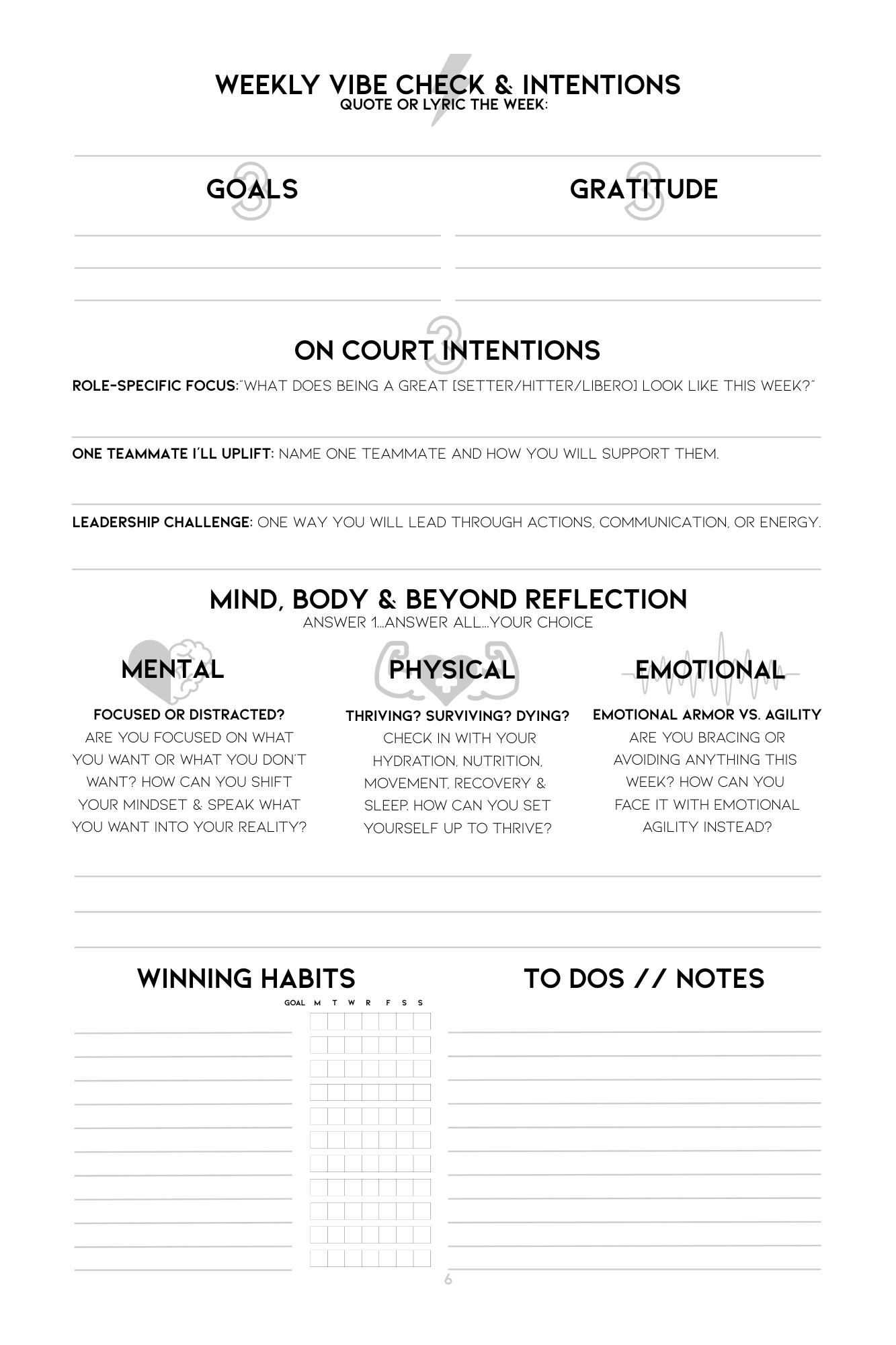 Engaging weekly worksheets and reflections that help athletes stay motivated & accountable.